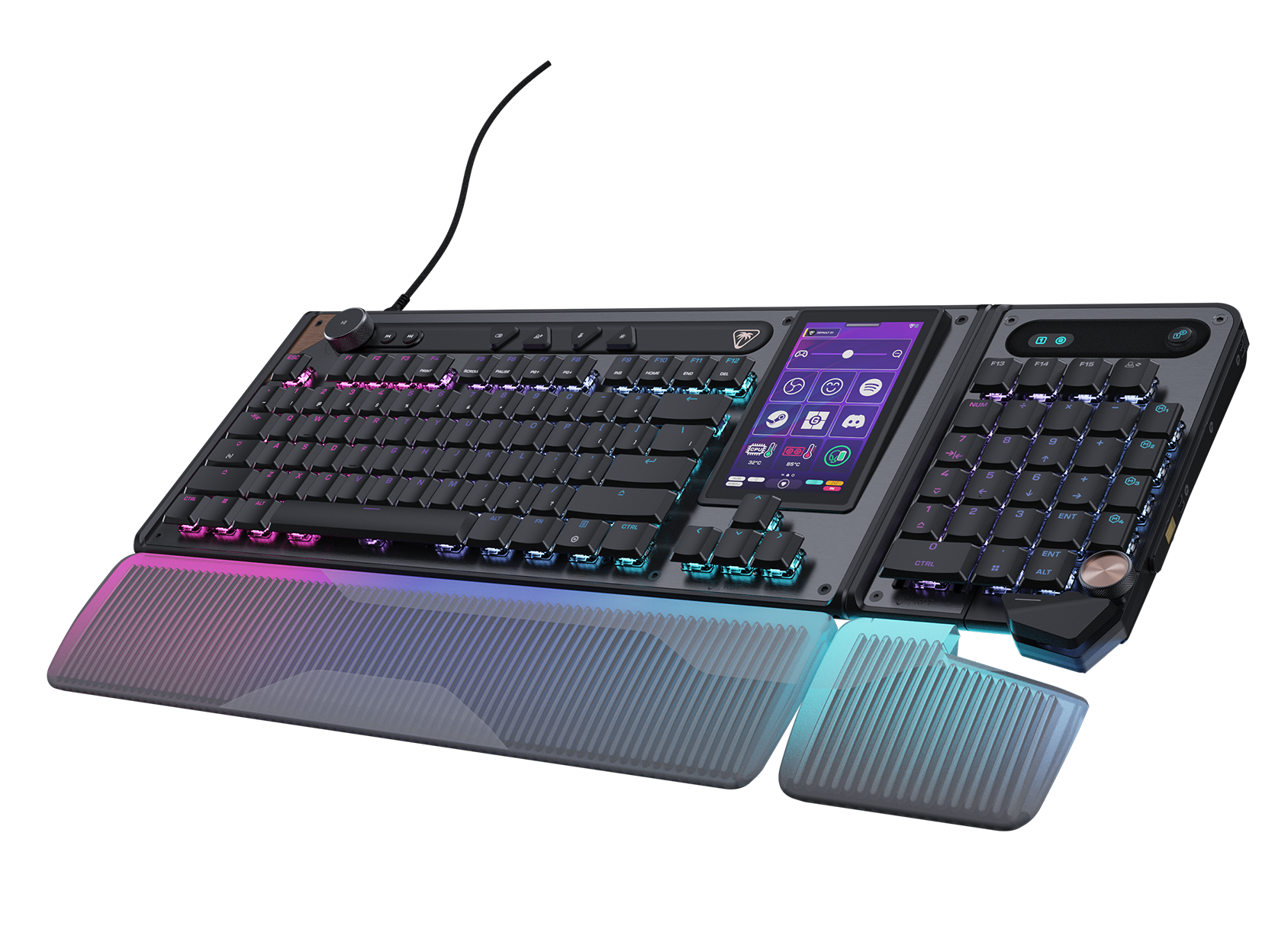 - 4.3インチのタッチディスプレイで各種設定やアプリ操作が可能な次世代ゲーミングキーボード
