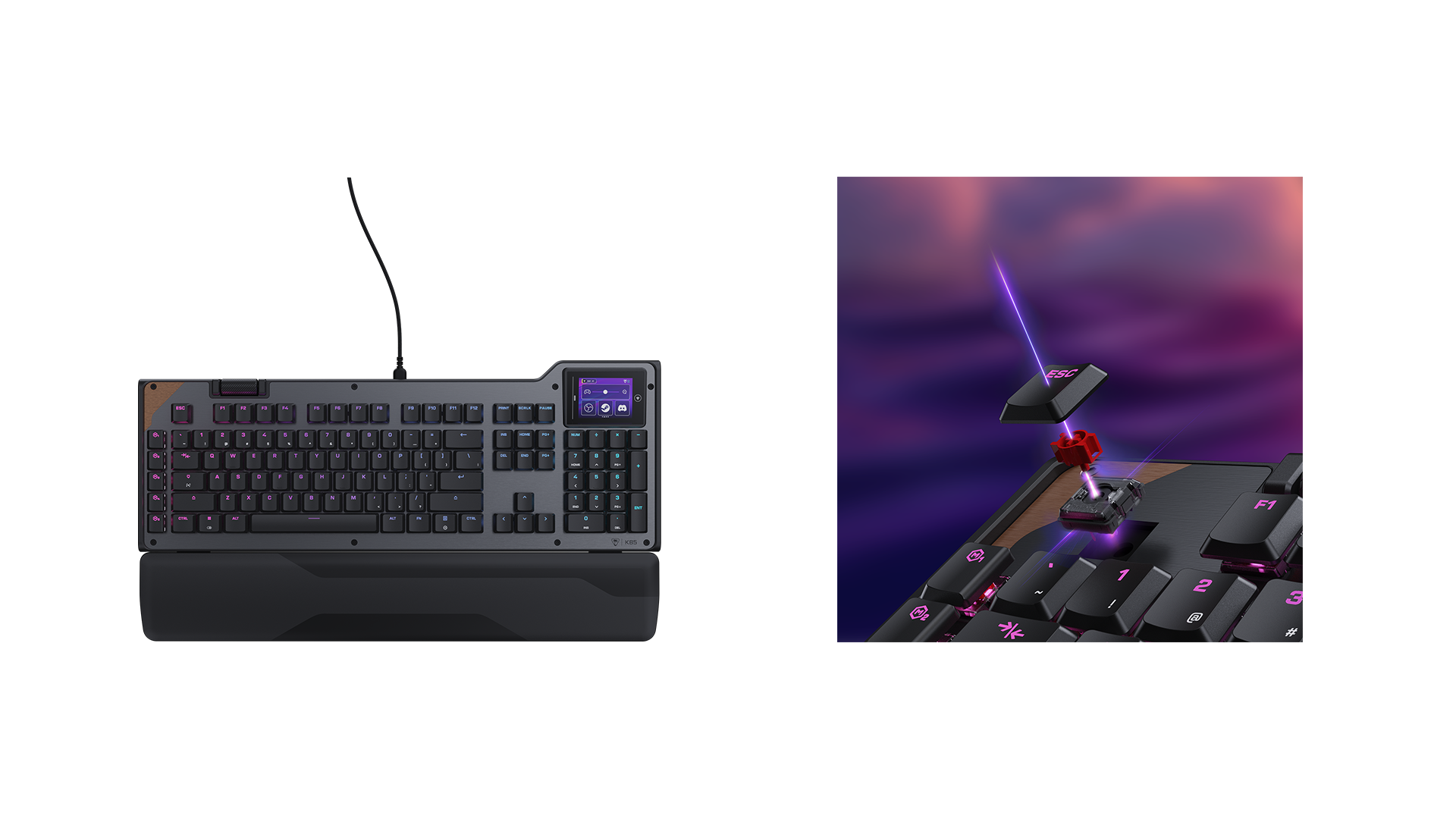 - 2.4インチのタッチディスプレイを搭載したフルサイズの有線ゲーミングキーボード